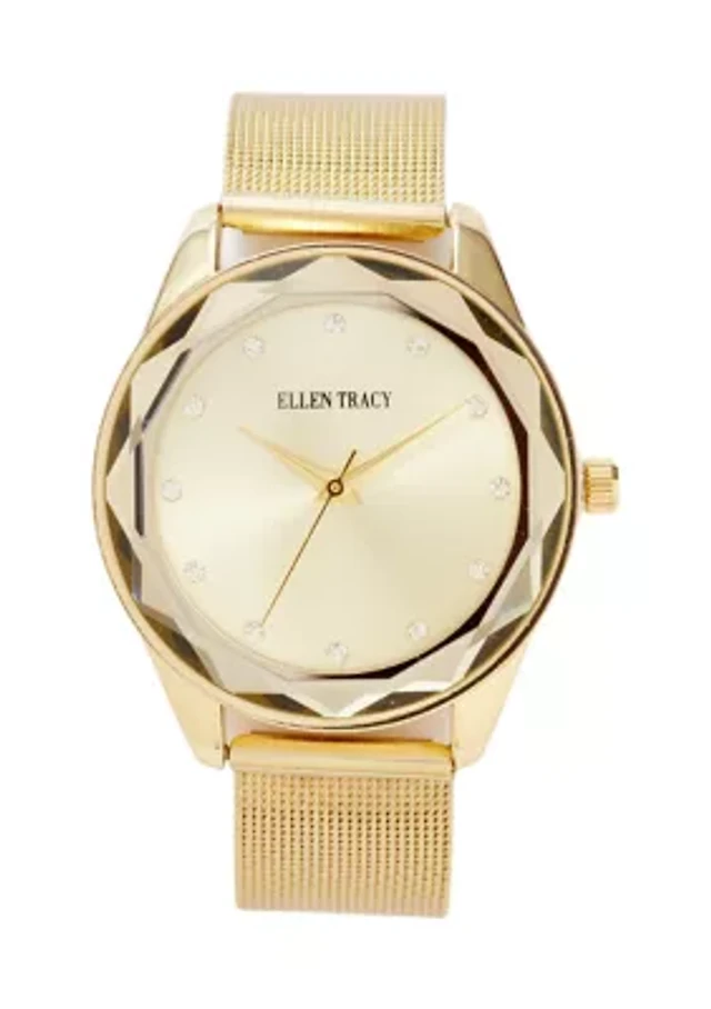 Women's Gold Tone Faceted Bezel Mesh Watch