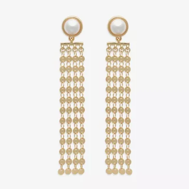Womens Genuine White Cultured Freshwater Pearl Sterling Silver Drop Earrings