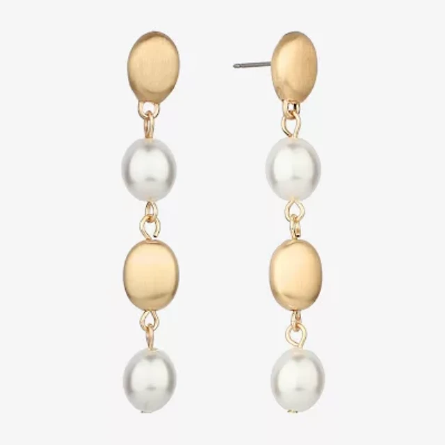 Bijoux Bar Gold Tone Womens Glass Simulated Pearl Bow Hypoallergenic Drop Earrings