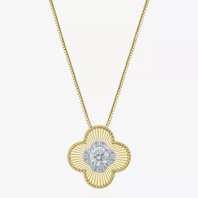 Diamond Blossom (G / Si2) Womens 1/2 CT. T.W. Lab Grown White 10K Gold Clover 18 Inch Pendant Necklace
