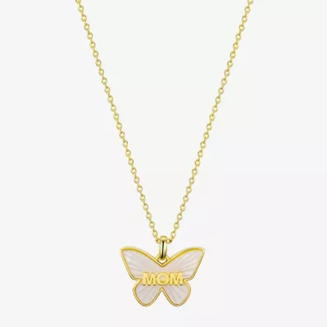 Womens Pink Mother Of Pearl Sterling Silver Butterfly 18 Inch Pendant Necklace