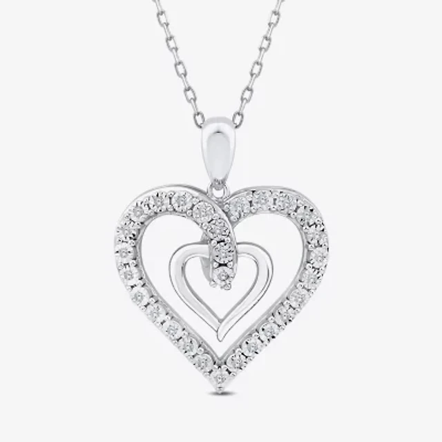 Womens Lab Created White Sapphire Sterling Silver Cross Heart 18 Inch Pendant Necklace