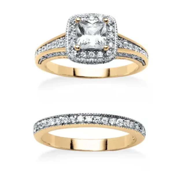 Womens 1 CT. T.W. Natural White Diamond 14K Gold Round Side Stone Halo Bridal Set