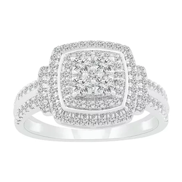 Womens 1 CT. T.W. Natural White Diamond 10K Rose Gold Square Halo Cocktail Ring