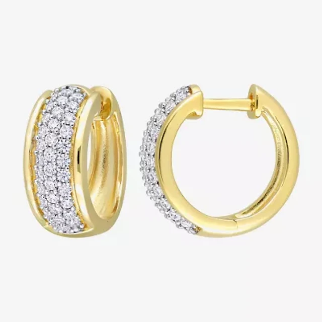 Sparkle Allure Huggie Womens Crystal 24K Gold Over Brass 14mm Hoop Earrings