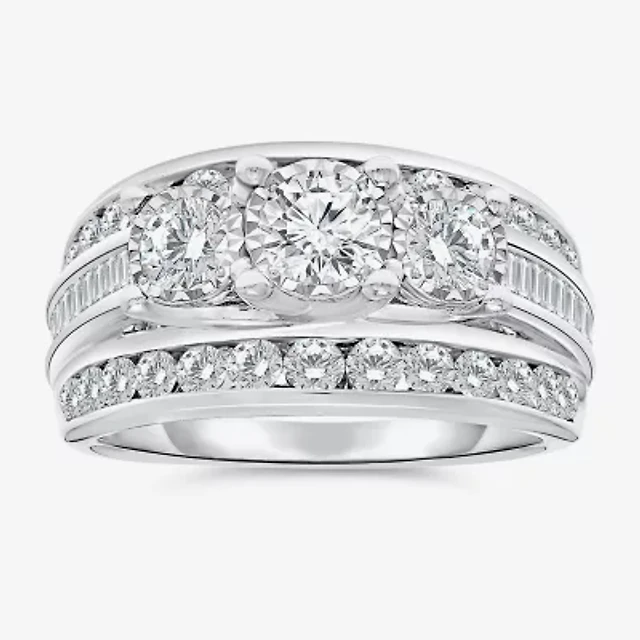 (I / I1) Womens 3 CT. T.W. Lab Grown White Diamond 10K Gold or 14K Oval Solitaire Engagement Ring