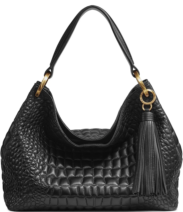 Donna Karan Glenwood Quilted Crocodile Embossed Slouchy Shoulder Bag
