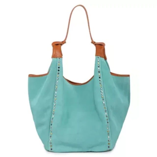 Poppy Oversized Drawstring Clutch - Studded Suede