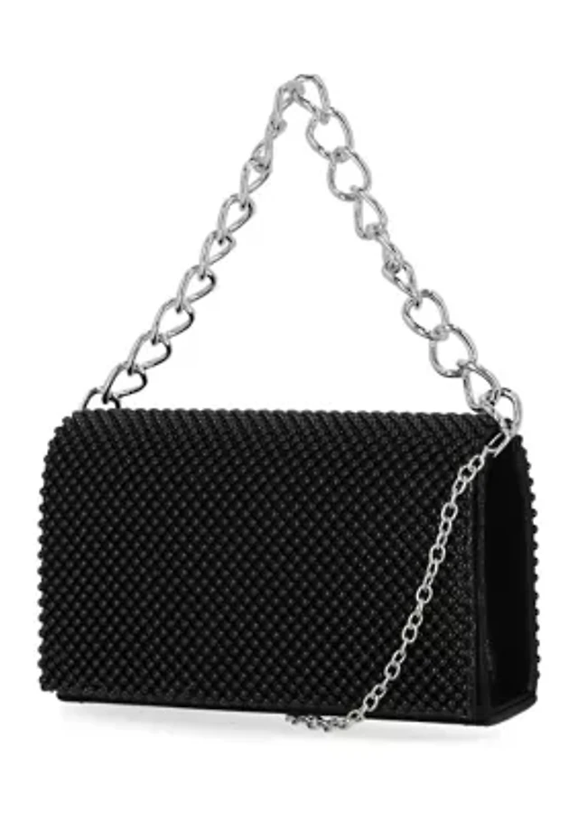 Mandi - Soft Shine Flap Clutch with Stone Pattern