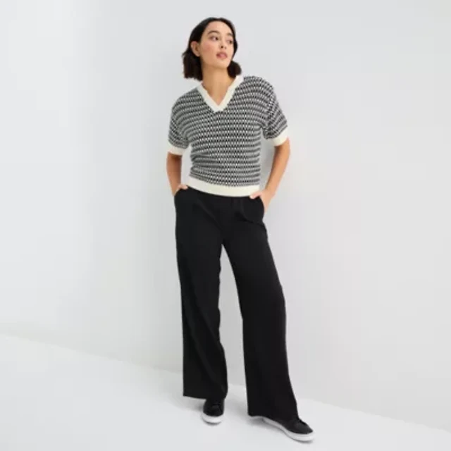 Liz Claiborne Womens Wide Leg Mid Rise Pull-On Pant
