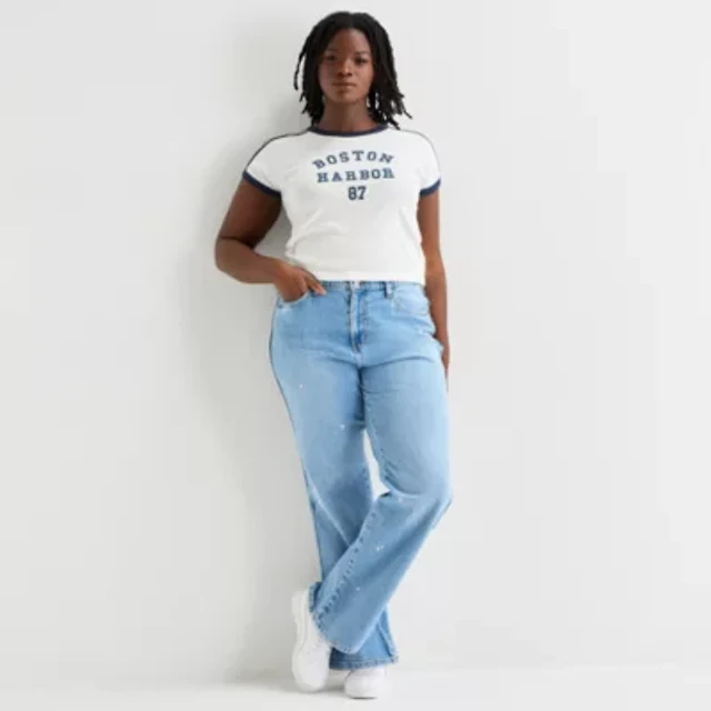 Arizona Womens Juniors Plus Mid Rise Denim Skirt