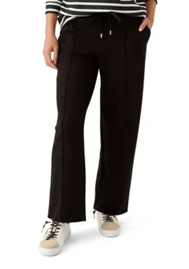 Petite Drawstring Terry Denim Wide Leg Jeans