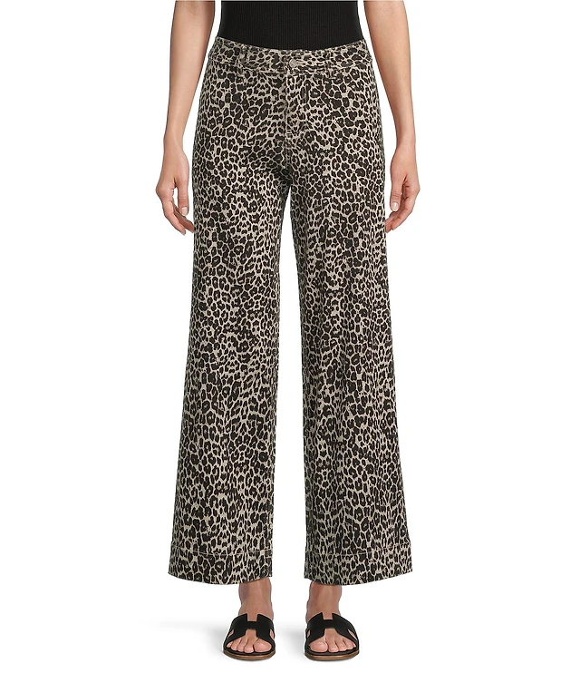 Daze Barrell Leg Mid Rise Leopard Print Denim Jeans