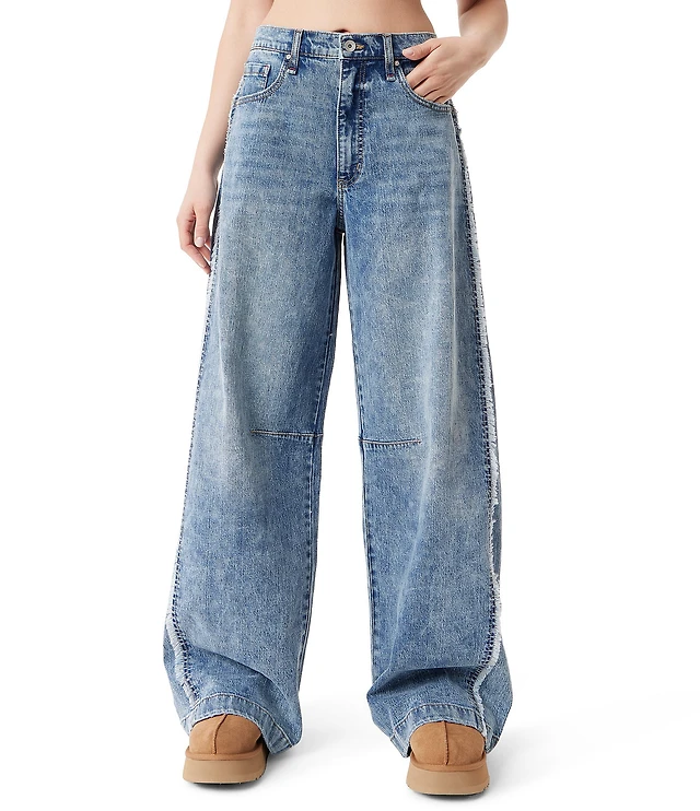 Stevie Jeans Rhinestone-Embellished High Rise Relaxed Fit Wide Leg Jeans