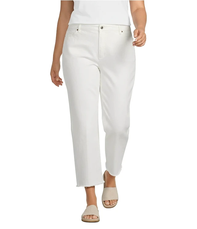 Code Bleu Petite Size Stretch Denim Straight High Rise Double Frayed Hem Ankle Jeans