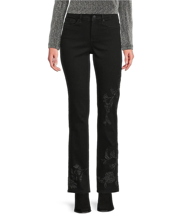 NYDJ Petite Size Marilyn Lift Tuck® Technology Straight Leg Front Embroidery Jeans
