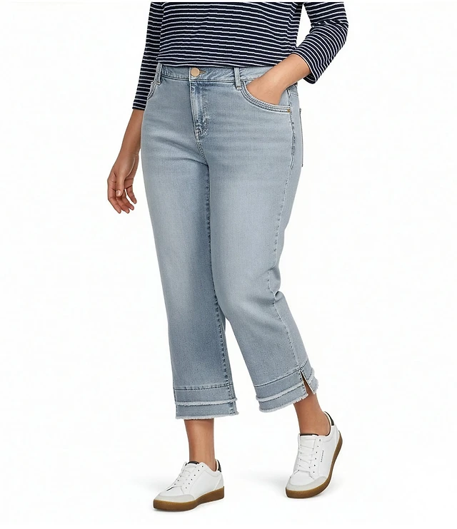 Code Bleu Plus Size Stretch Denim Straight High Rise Double Frayed Hem Ankle Jeans