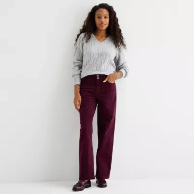 St. John's Bay Womens High Rise Wide Leg Corduroy Pant