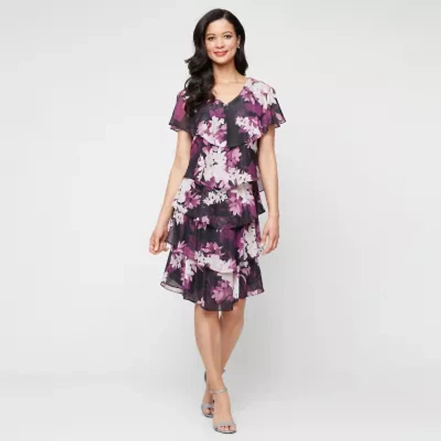 Robbie Bee Womens Short Sleeve Floral Fit + Flare Dress