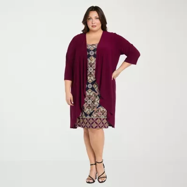 Maia Womens Plus Long Sleeve Midi Sweater Dress