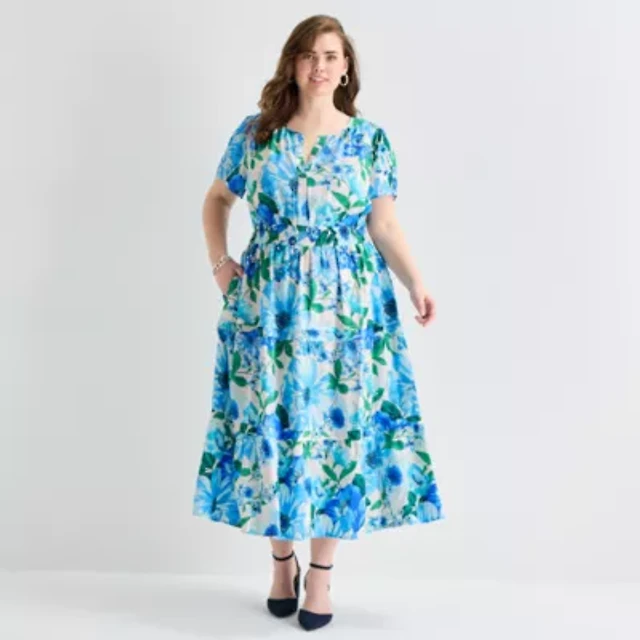 Sam And Jess Womens Plus Short Sleeve Floral Shift Dress