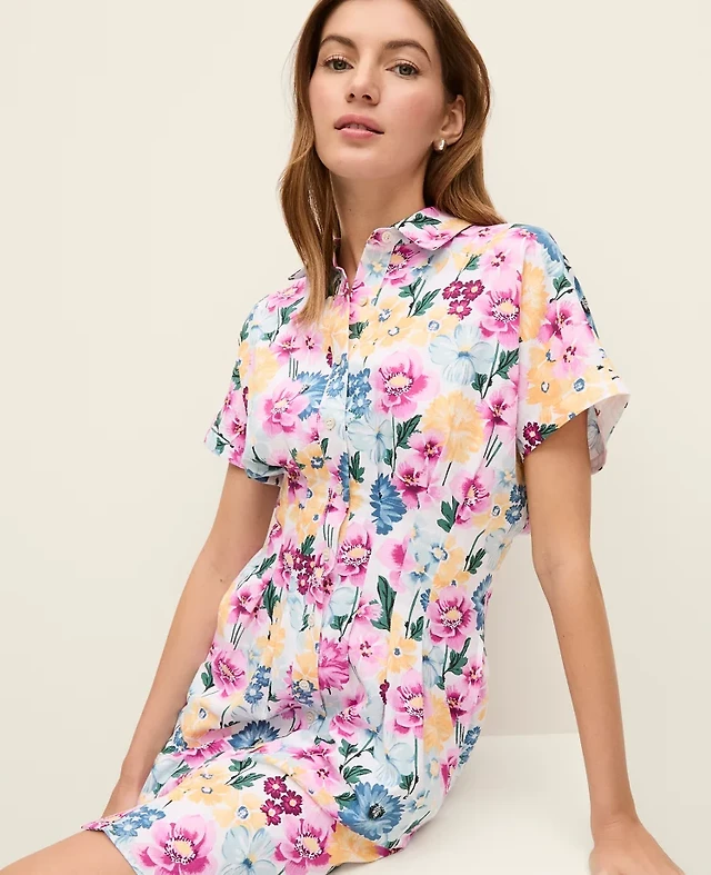 Ann Taylor Petite Weekend Floral Linen Blend Shirtdress Women's