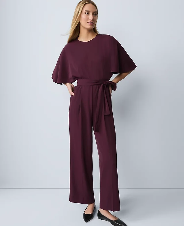 Ann Taylor Belted Crew Neck Jumpsuit Poised Plum Women's