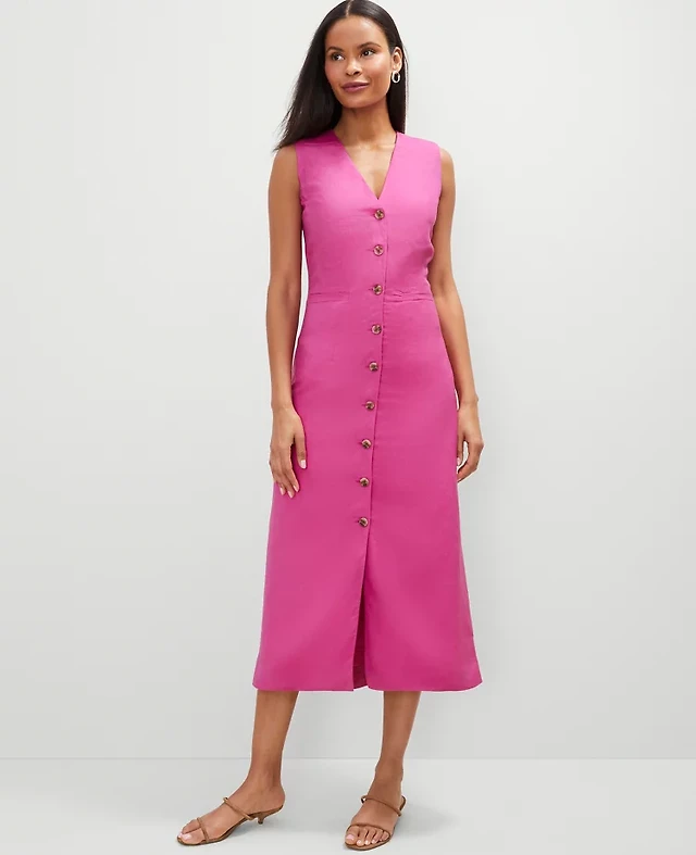 Ann Taylor Floral Linen Blend Midi Dress Black Women's