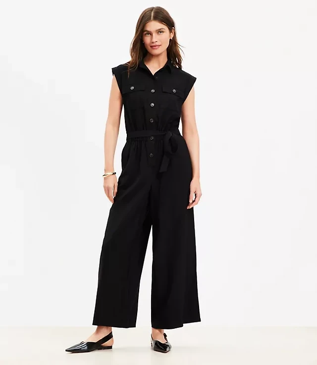 Ann Taylor Linen Blend V-Neck Wrap Dress Black Women's