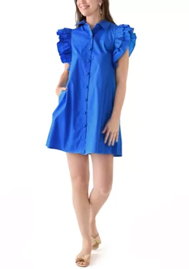 Striped Poplin Bubble Hem Mini Pocket Shirtdress