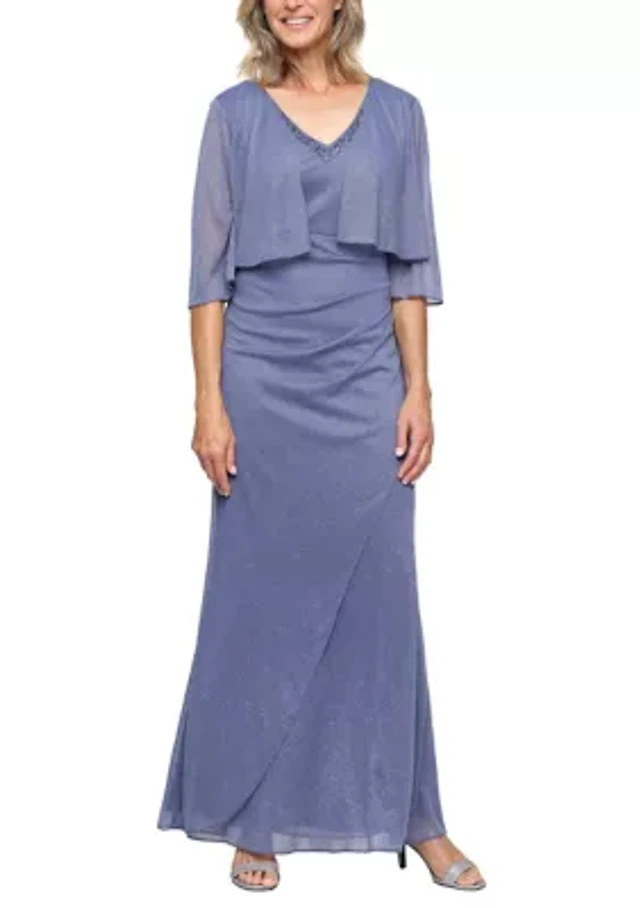 Women's Long Dress with Sequin Bubble Hem Sleeves