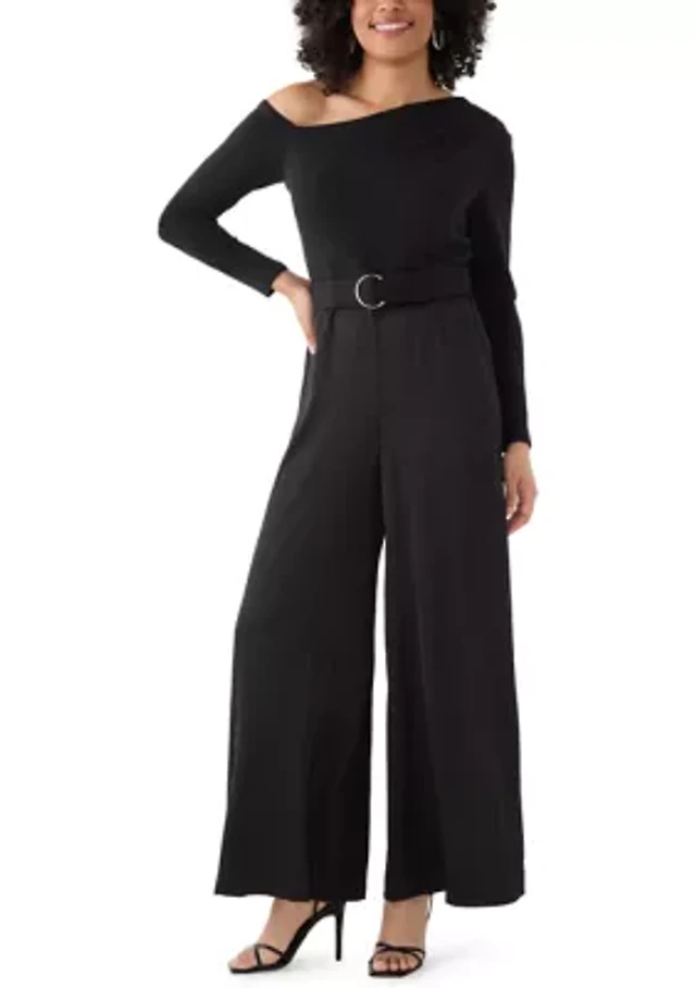 Women's Long Sleeve Asymmetrical Belted Jumpsuit
