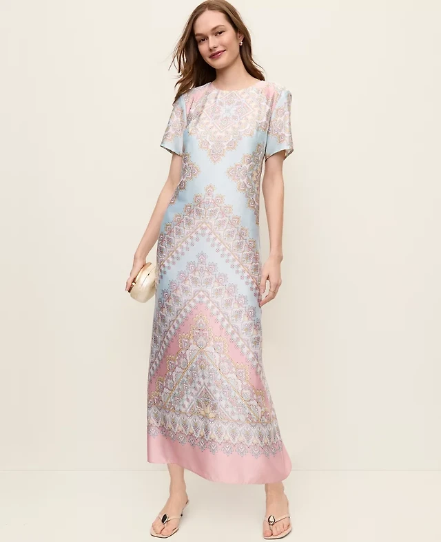 Women's Short Sleeve Square Neck Floral Print Midi Dress