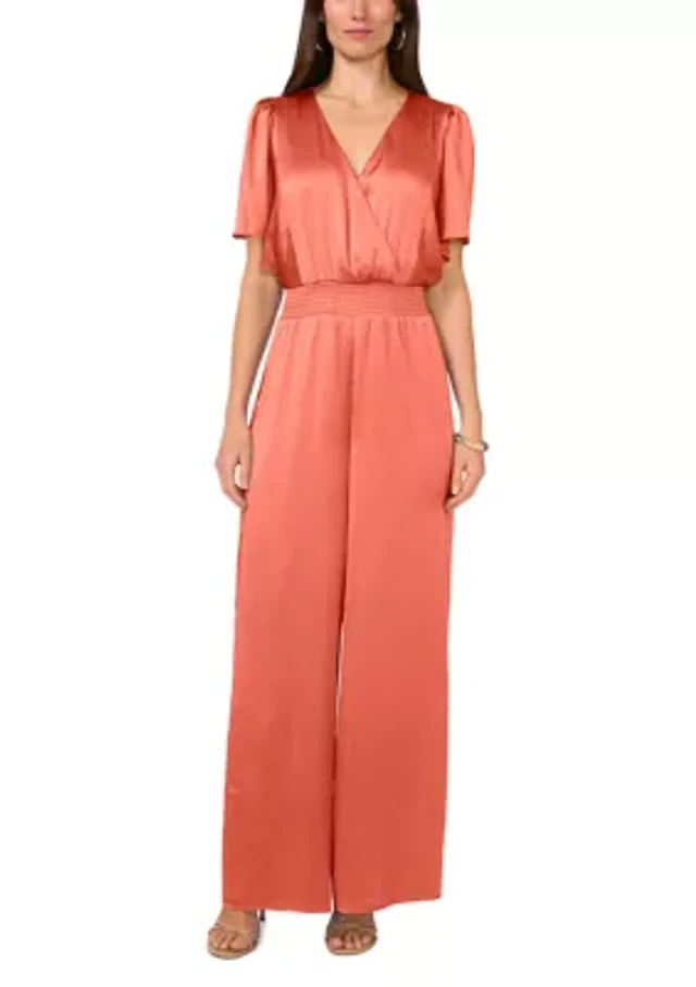 Women's Flutter Sleeve V-Neck Smock Waist Jumpsuit