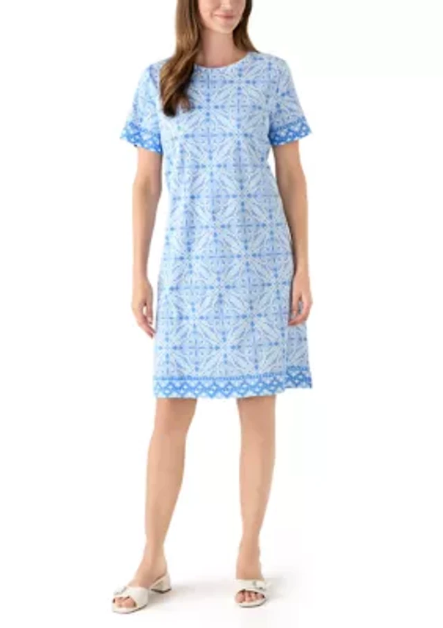 Sewing Down South x Crown & Ivy™ Mere Short Sleeve Printed Eyelet Dress