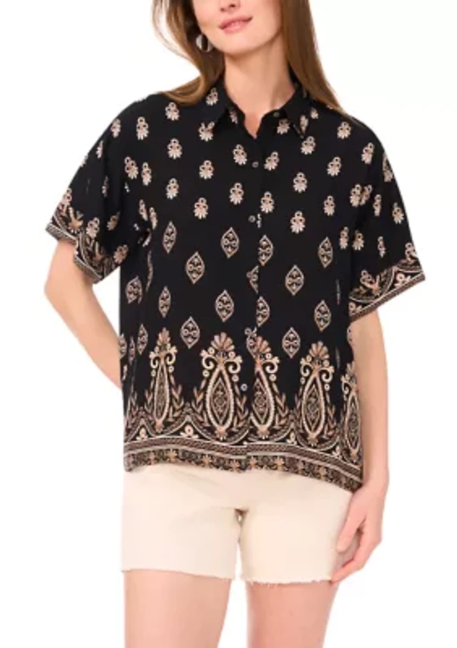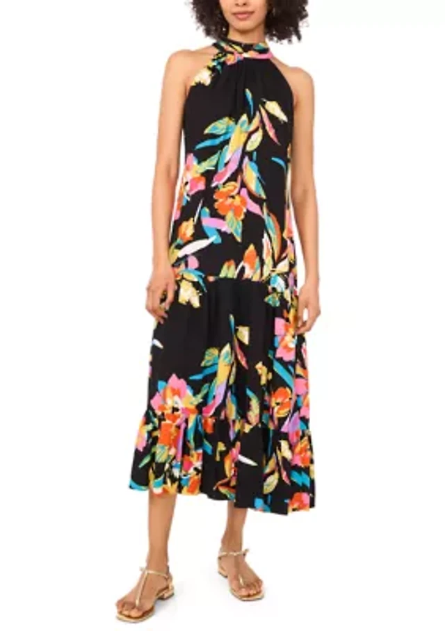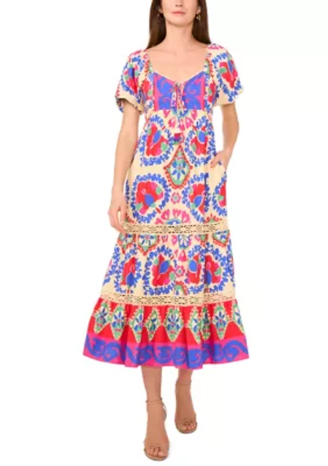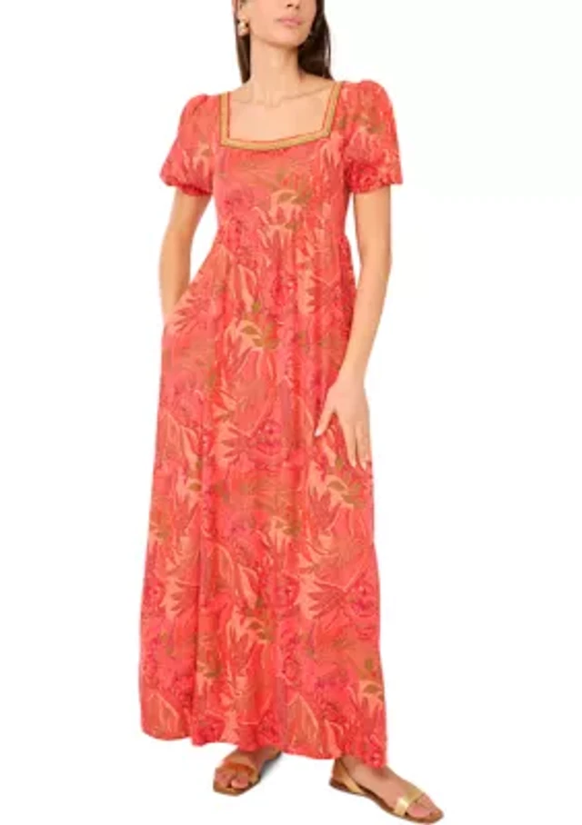 Petite Floral Print Gathered Popover Long Sleeve Midi Dress