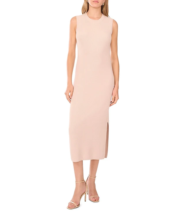 Textured Crew Neck Sleeveless Mini Sweater Dress