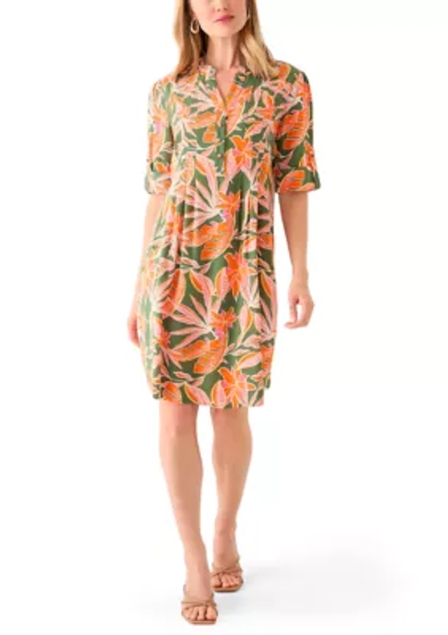 Petite Long Sleeve Tie Waist Shirt Dress with Buttons