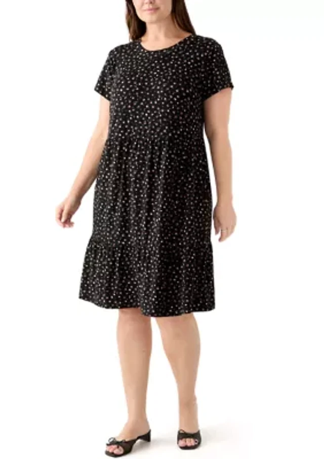 Plus 3/4 Split Neck Satin Rich Black Mini Dress