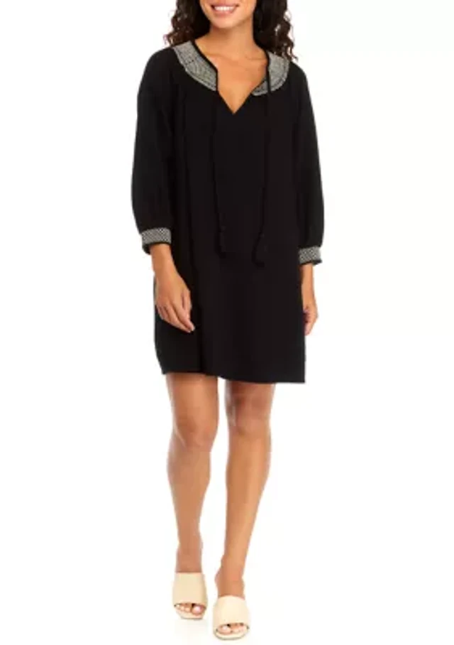 Sewing Down South x Crown & Ivy™ Brooke Three Quarter Sleeve Printed Dress with Embroidery