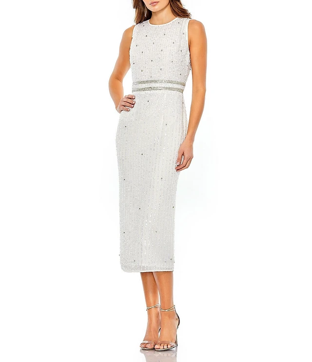 Dress the Population Blair Sequin Embroidered Mesh V-Neck Sleeveless A-Line Midi Dress