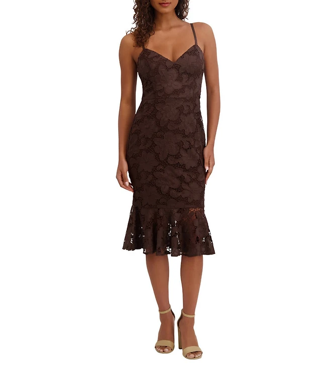 B. Darlin Spaghetti Strap V-Neck Stretch Shiny Knit Shirred Bodycon Dress