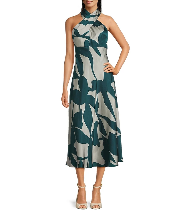 Honey and Rosie Halter Neck Sleeveless Criss Cross Front Bodice Midi Dress