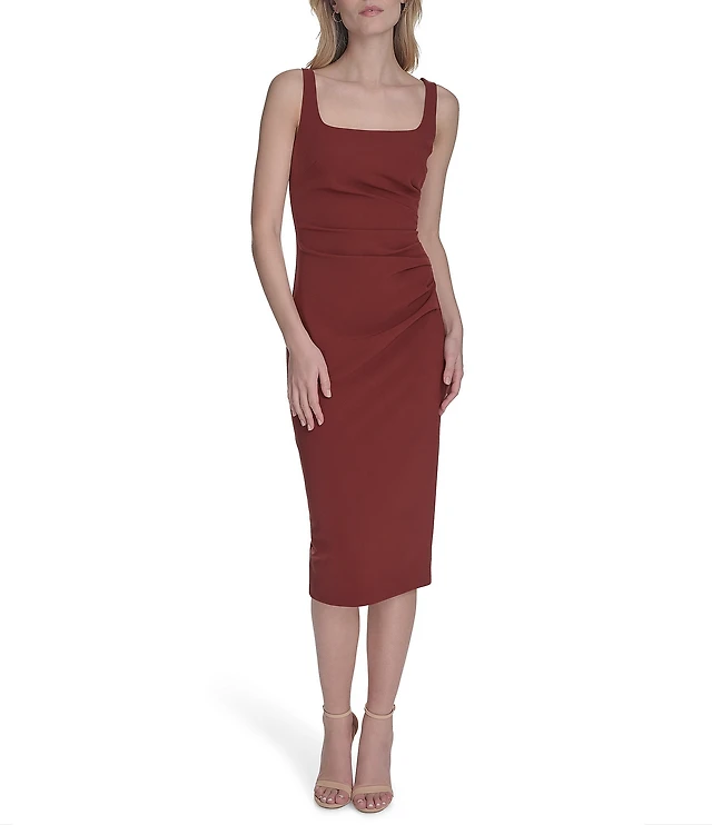 Vince Camuto Square Neckline Sleeveless Midi Sheath Dress