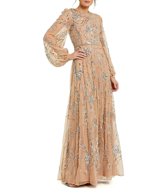 Aidan Mattox Beaded Mesh High Neck Racerback Sheath Dress