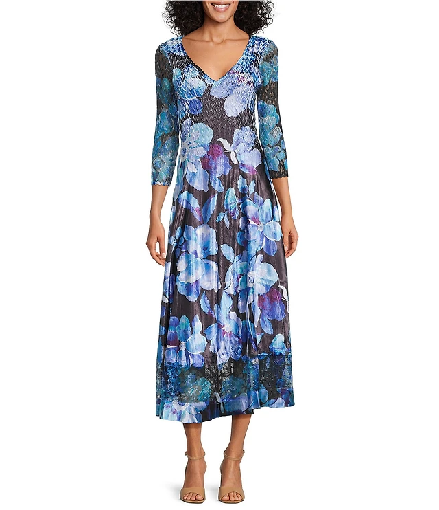 Bryn Walker Lanterna Giardino Print Viscose Satin Round Neck 3/4 Sleeve Maxi Dress
