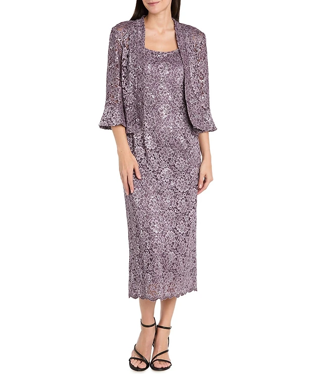 Kay Unger Elsa Printed Boat Neck Tea Length Dress