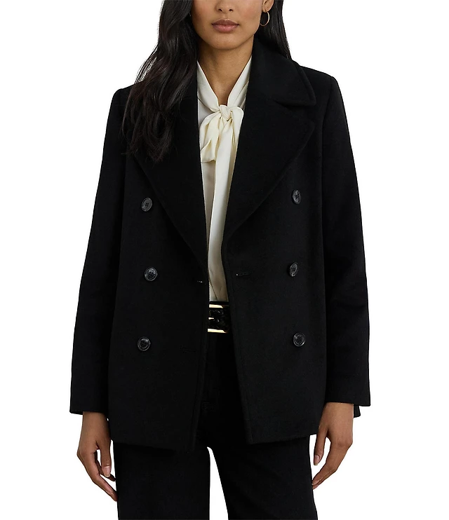 MICHAEL Michael Kors Wool Blend Faux Fur Trim Peter Pan Stand Collar Button Front Peacoat