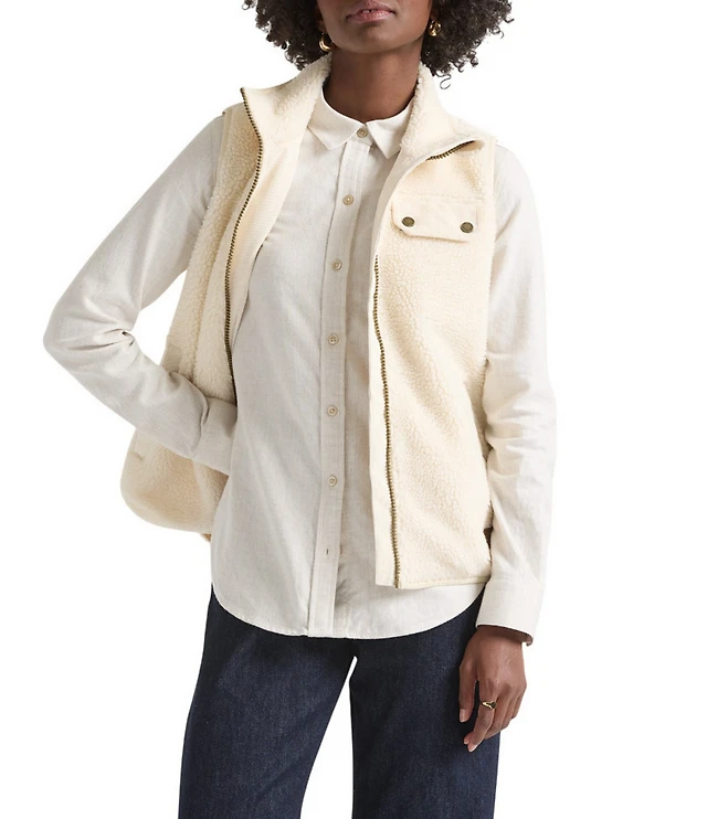 Pendleton Laurel Berber Fleece Stand Collar Sleeveless High-Low Hem Zip Front Vest