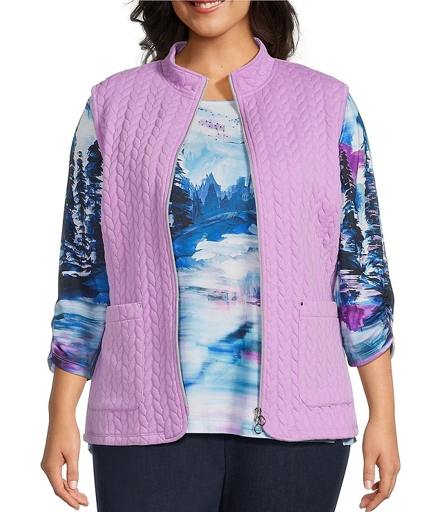 Allison Daley Plus Diamond Quilt Sleeveless Zip Up Vest